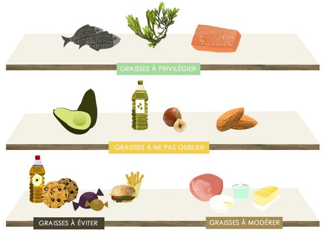 - OMEGA 9 "BONNES GRAISSES" : l'huile d'olive, l'avocat, les graines d'oléagineux, les graisses d'oie, de canard...