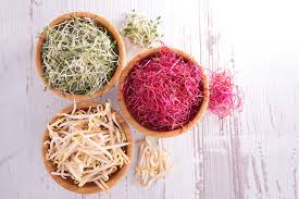 - Les graines germées : Les pousses et les graines germées sont 20 à 40 fois plus riches en protéines que la viande, elles sont également 4 fois plus riches en calcium que les produits laitiers et 3 fois plus riches en fer que le foie d'animal .... et infiniment riches en enzymes... En résumé, ce sont des bombes de nutriments !!!