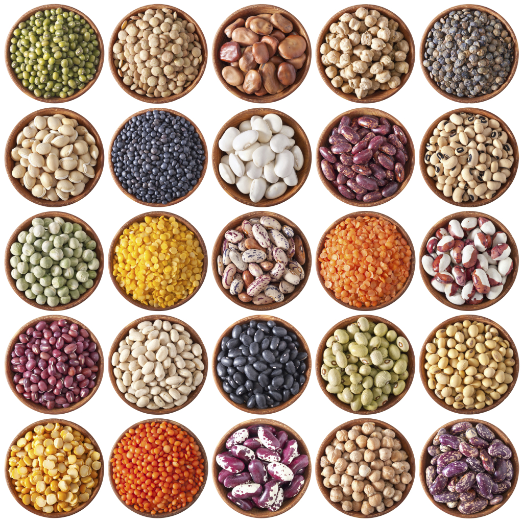 - Les légumineuses : Fèves / Flageolets / Haricots sans la gousse (Haricots verts mangés avec la gousse = légumes) = Blancs (lingots, cocos, soissons, cannellini ou haricots blancs fins, petits haricots blancs, etc.) Haricots, borlotti (tachetés de rouge) / Haricot, adzuki (haricot rouge du Japon )/ Haricots noirs / Haricots rouges / Haricot, mungo (soja) / Lentilles brunes, corail, jaunes ou vertes / Lupin (tramousses) / Petit pois frais / Pois cassés / Pois chiches /Soja, graines ou noix de / Tempeh (fèves de soya fermentées) / Tofu ).