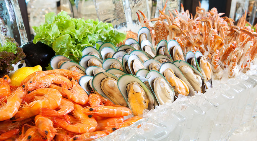 - Fruits de mer Les bivalves (amande, palourde, moule, huître) / Les céphalopodes (calamar, seiche, pieuvre) / Les gastéropodes (bigorneau, conque, volute) / Les crustacés (crevettes, langouste, homard, crabe) / Les échinodermes (oursin, étoile de mer, concombre de mer)