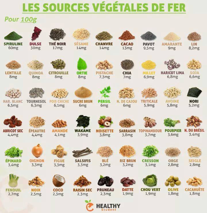 Les aliments qui en contiennent : légumes verts, fruits secs, jaune d'œuf, pois chiche, foie, abats, graines de tournesol
